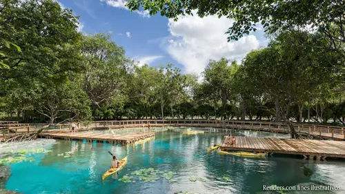 de áreas verdes protegidas con cenotes, lagunas y senderos naturales.